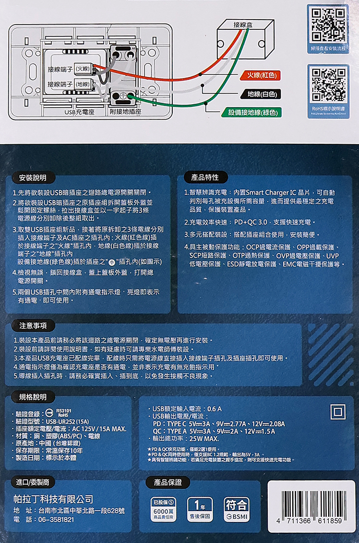 氮化鎵組合插座PD25W快充 UR-08