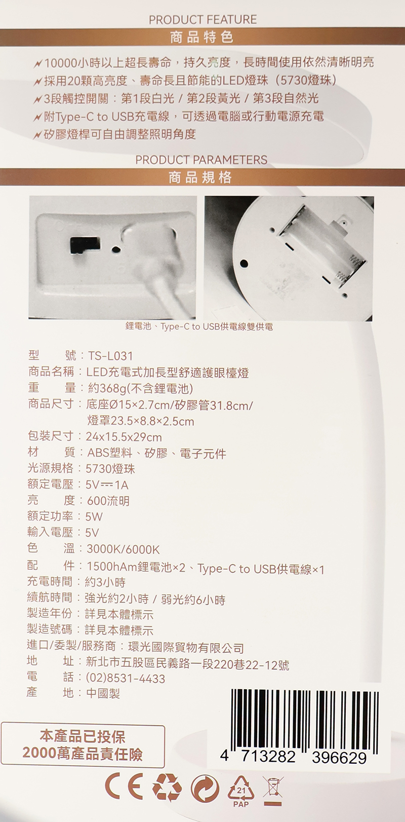LED充電加長舒適護眼檯燈 TS-L031